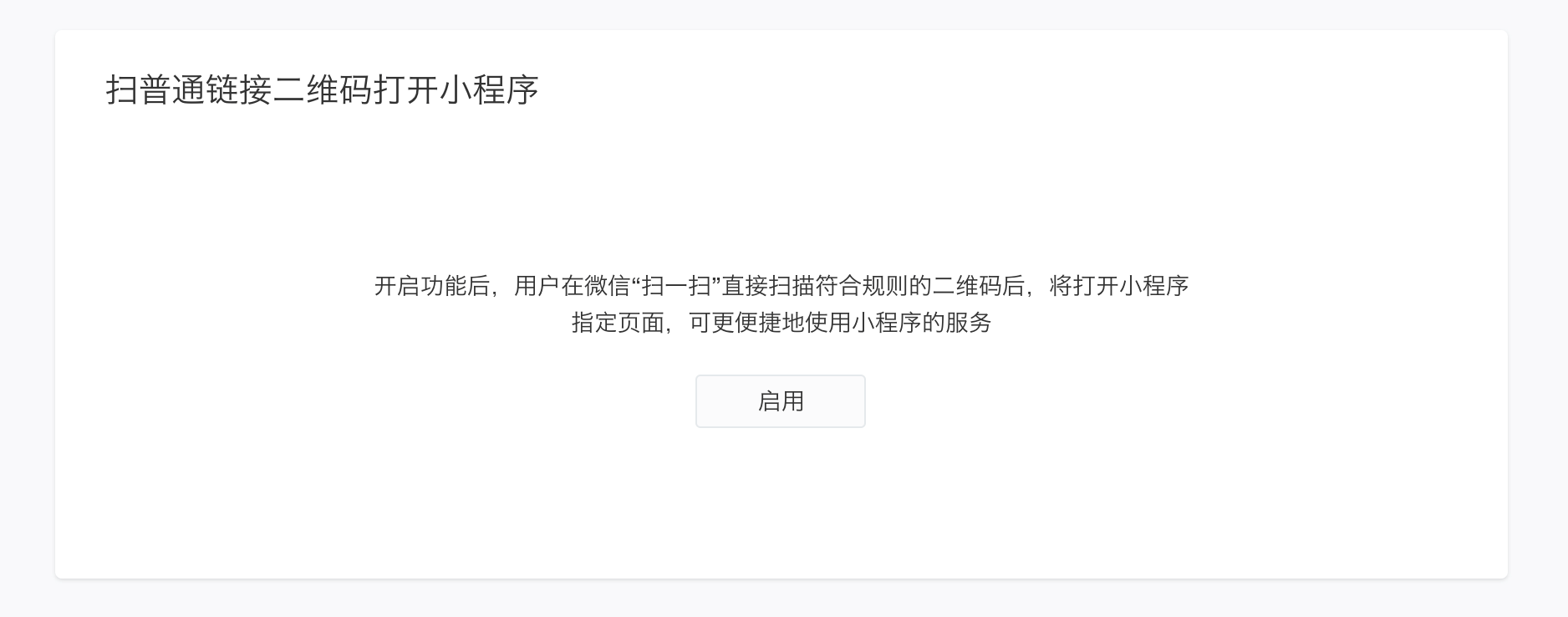 商户如果在线下已铺设了普通链接二维码,可在公众平台的小程序管理后台进行配置,用户扫描该原有线下普通链接二维码可直接打开小程序。