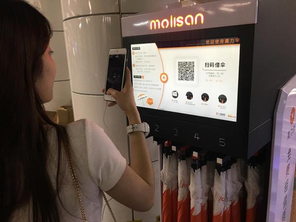 首先,和所有的共享模式一样,每个共享雨伞或共享雨伞柜上都有一个唯一二维码,二维码作为连接线下与线上的入口,用户通过扫描二维码关注公众号或安装APP,实现用户转化。