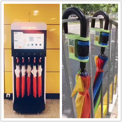 共享雨伞与共享单车很类似,可分为两大类解决方案:有桩方案和无桩方案。
