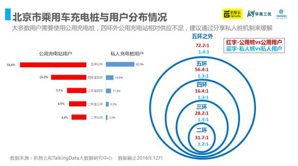 北京现阶段以公用充电用户为主,多数在五环以外,然而四环外公用充电站供应不足,用户和充电桩比例关系是50:1,可考虑私人桩分享方式来缓解。