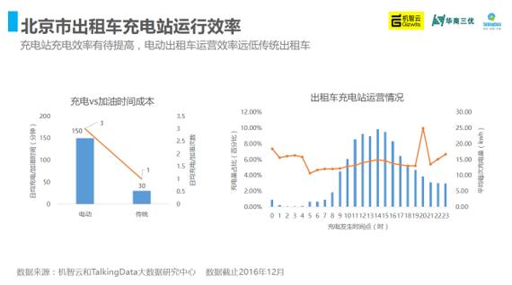 北京电动出租车运营效率远低于传统出租车,现阶段电动出租车每天平均充电时长达2个半小时,需要分三次完成,对比传统加油只需一次共半小时的加油时间而言。