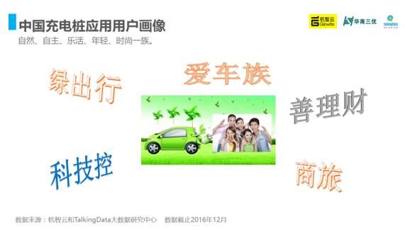 中国充电桩应用用户整体呈现出“绿出行,科技控,爱车族,善理财、常商旅”的人群特性,属于“自然、自主、乐活、年轻、时尚”群组,是移动互联网中面向各消费品行业质量很高的一群人。