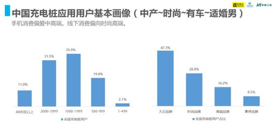 中国充电桩应用用户偏爱使用中高端移动设备,线下消费偏向时尚高端。