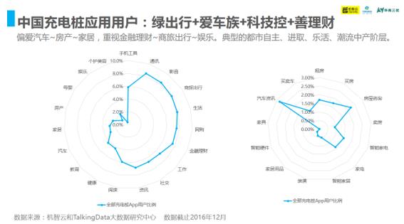 中国充电桩应用用户偏爱汽车~房产~家居应用,重视金融理财~商旅出行~娱乐类应用潮流中产阶层。