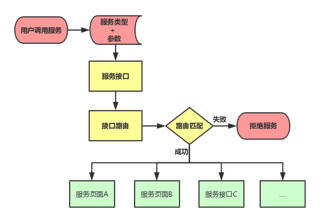 如图 1 所示,我们使用了接口路由的方法,在接口模块内置了一个路由表,决定服务类型和对应服务(通用服务页面和通用服务接口)的映射。